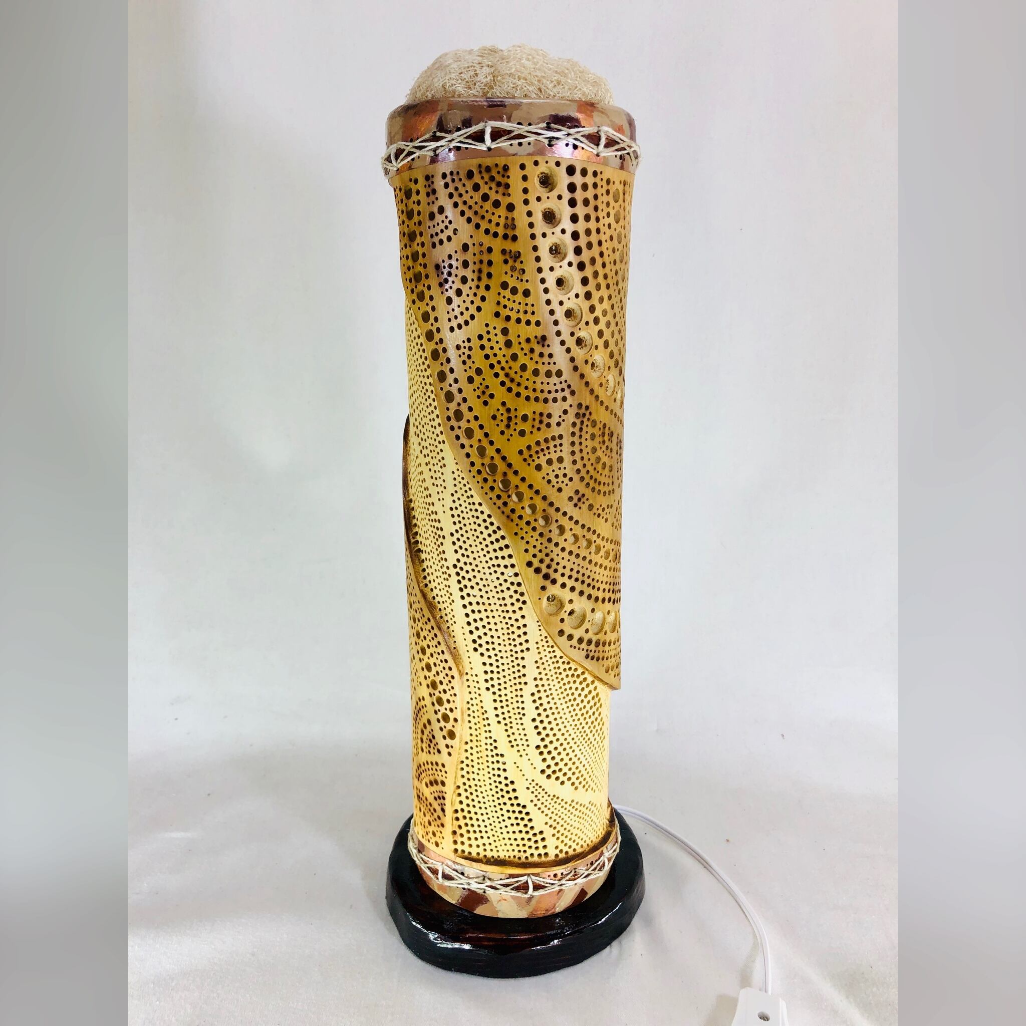 三種類の穴の彫り方と、削り出しにより模様が様々に見えるバンブーランプシェードです。