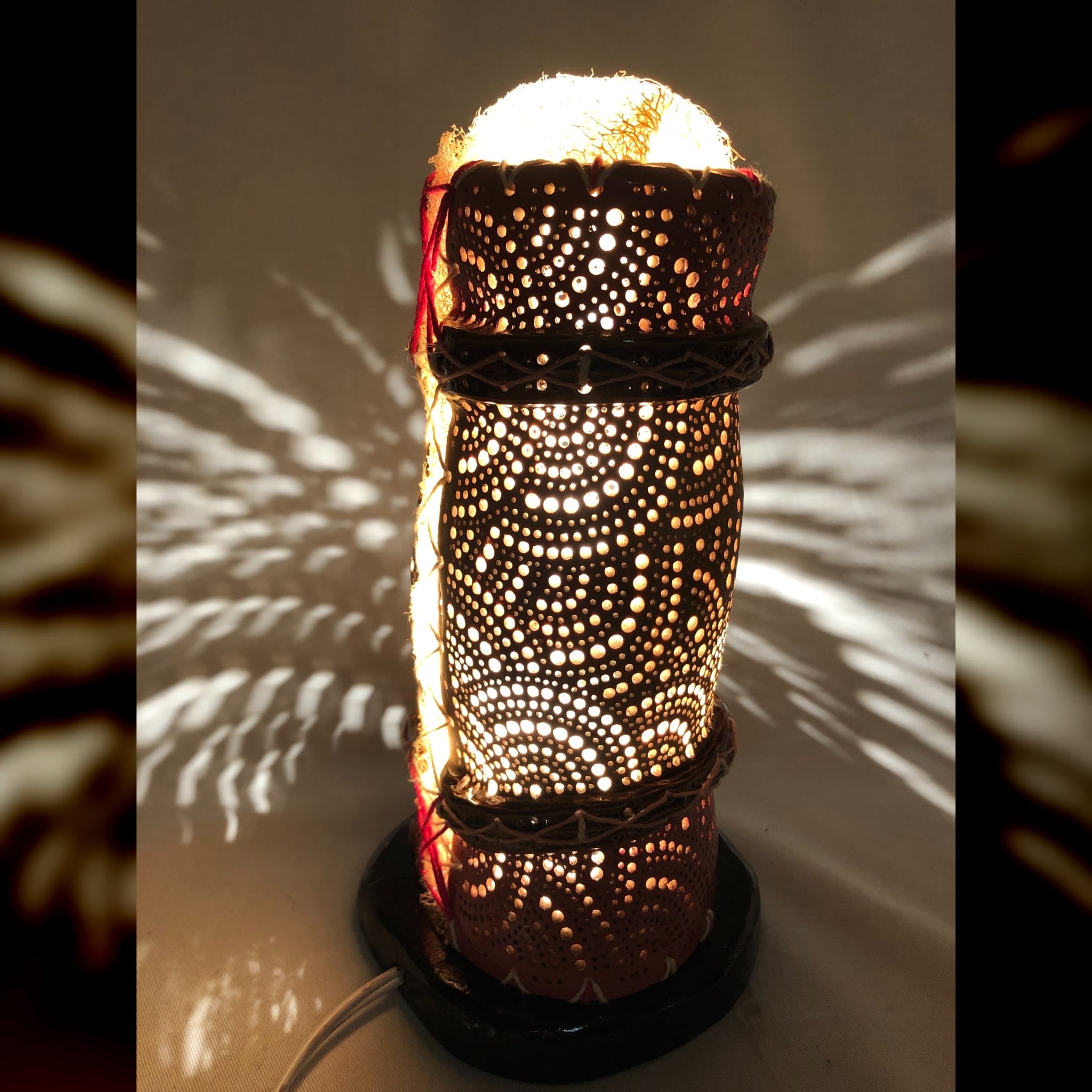 漆塗りと生成り仕上げのツートンバンブーランプシェード(竹灯籠)