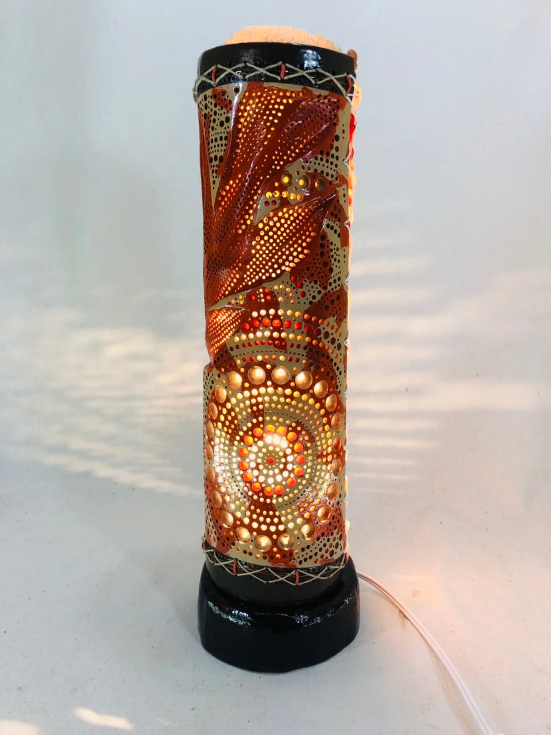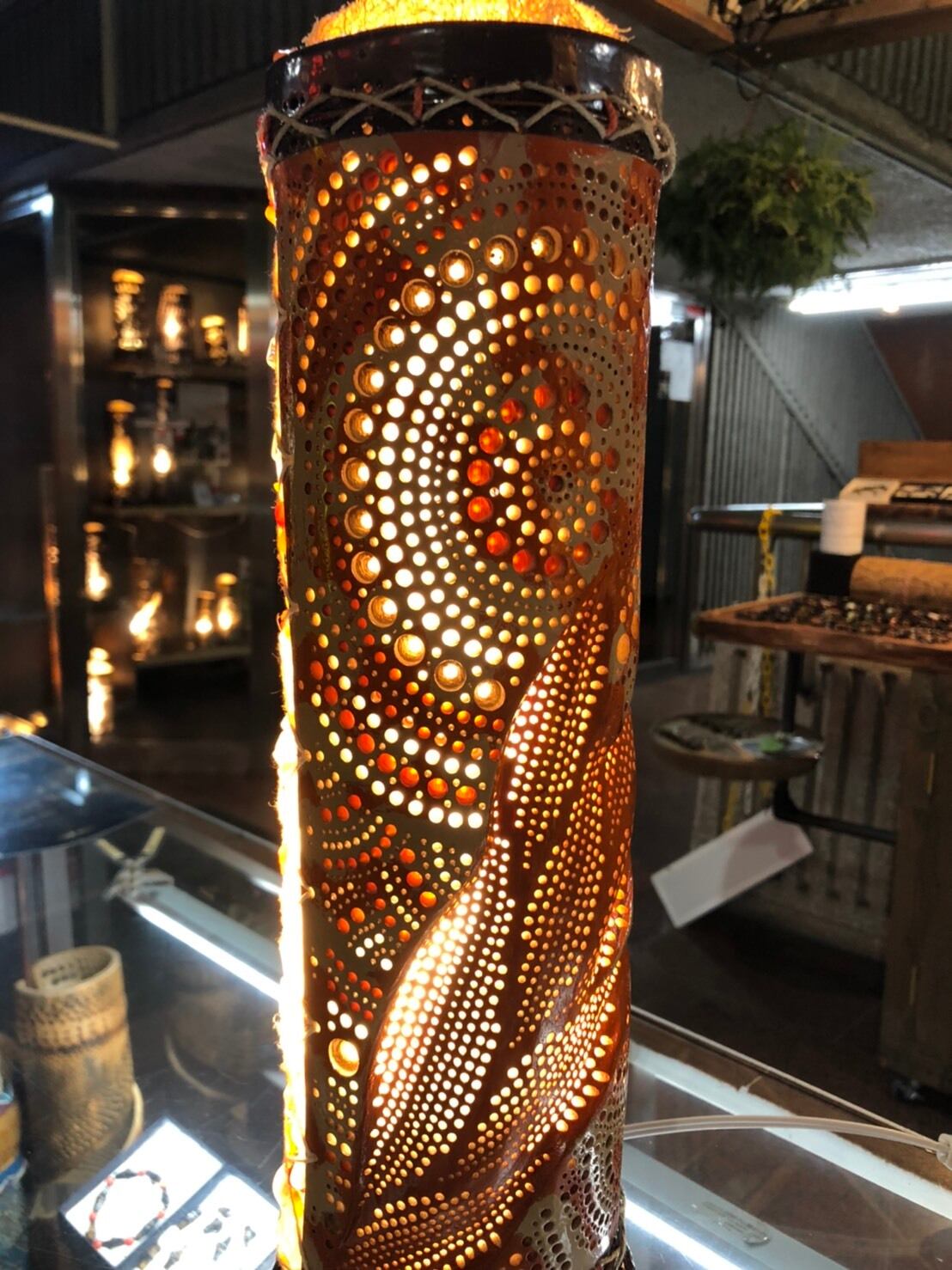 綺麗なオレンジ色の漆と、透かし彫りの光、そして背割り部分のカーネリアンと、綺麗なオレンジ色の作品です。